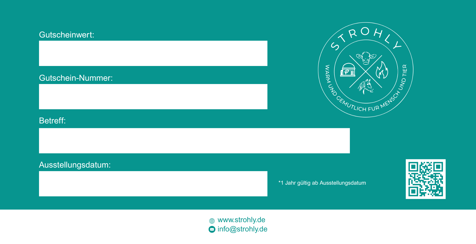 Verschenke jetzt Strohkomfort & Qualität – mit einem Gutschein von Strohly! Der Gutschein kommt per Post zu dir oder du druckst ihn ganz einfach selbst aus.